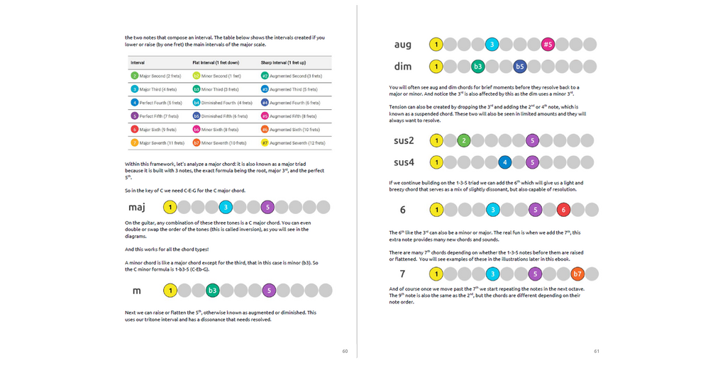 This ebook will show you guitar chords in an innovative way: you'll understand how intervals are combined to create all the chord types, and you'll learn how to play any chord in any fretboard area.